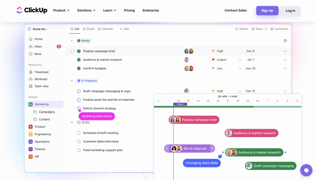 Instead of using 5–6 different tools, ClickUp brings everything under one roof.